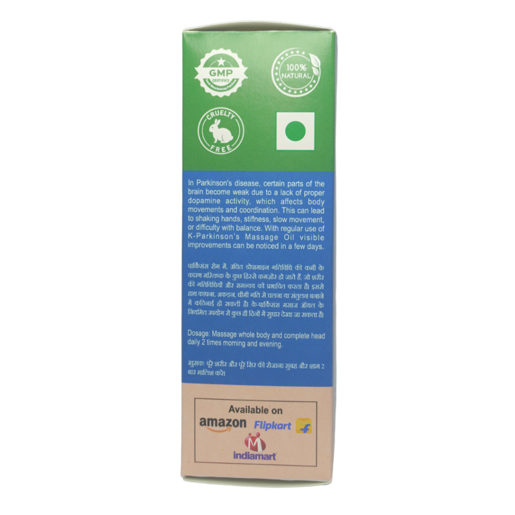 Ayurvedic medicine has addressed neurological disorders for thousands of years through sophisticated understanding of the nervous system and its relationship to overall health. K Parkinson’s Massage Oil draws on this ancient wisdom, utilizing herbs traditionally categorized as “Medhya” (enhancing neural function) and “Vatahara” (balancing the biological air principle associated with movement and the nervous system).