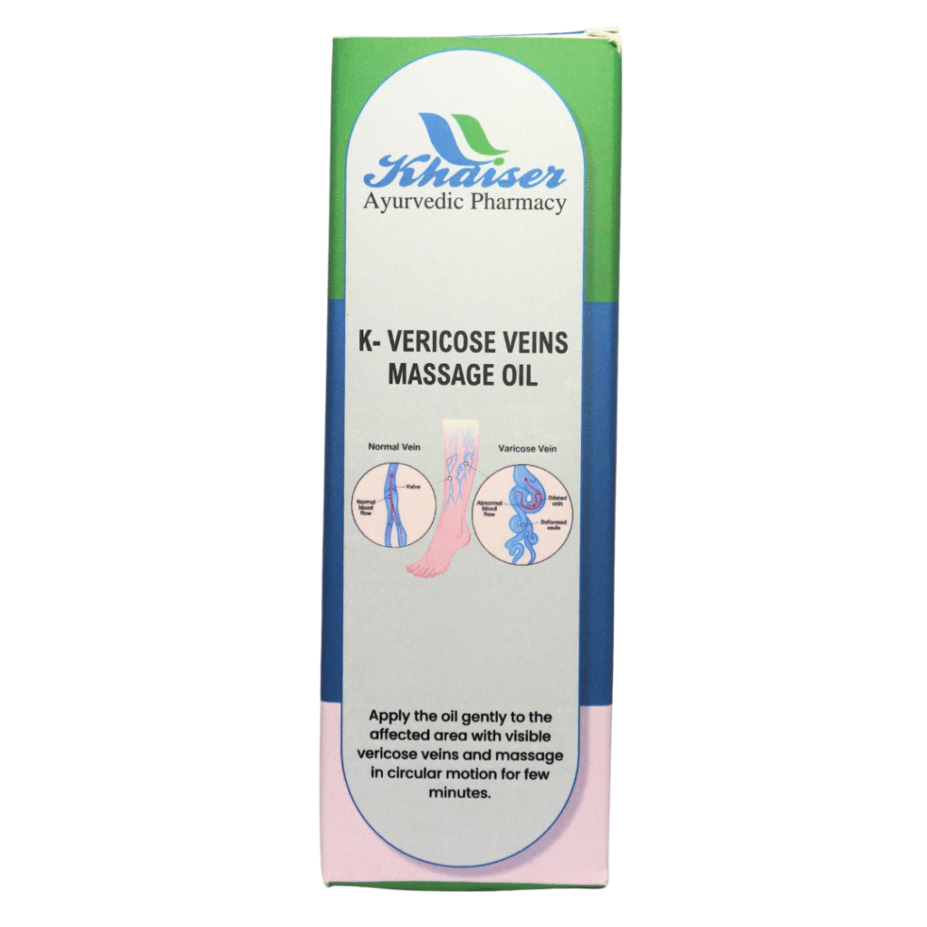 Varicose veins affect millions of people worldwide, causing discomfort, swelling, and cosmetic concerns. K Varicose Veins Oil from Khaiser Ayurvedic Pharmacy offers a natural, Ayurvedic approach to this common condition, addressing both symptoms and underlying circulatory issues.